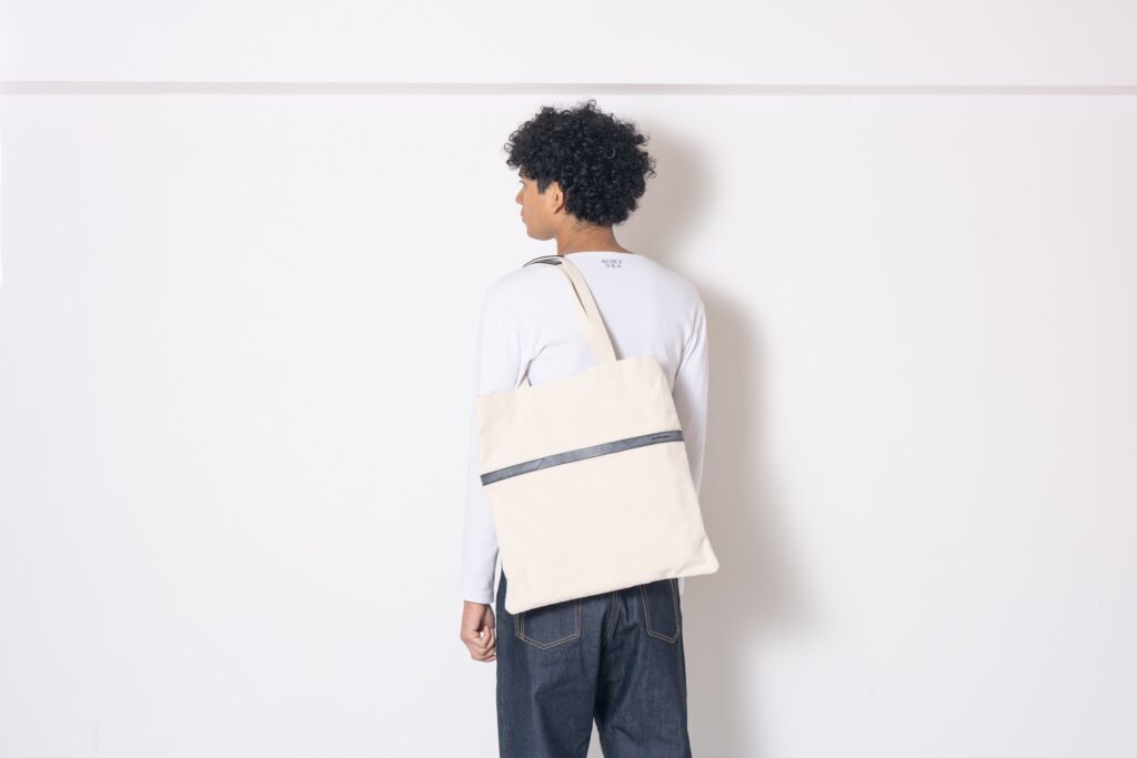 "雑誌や本がすっぽり入る”トートバッグ。折り返してレザー部分を持ち手としても使える2way仕様。