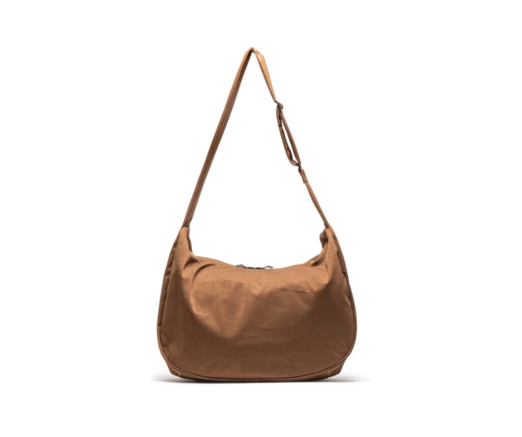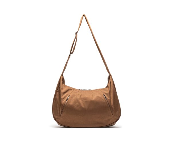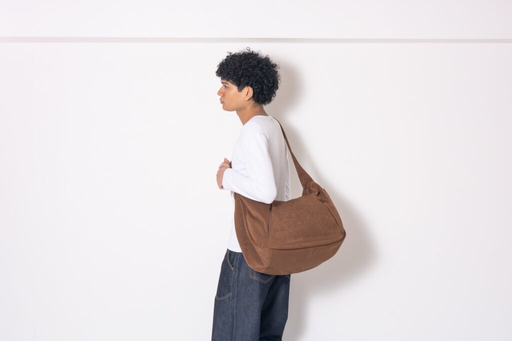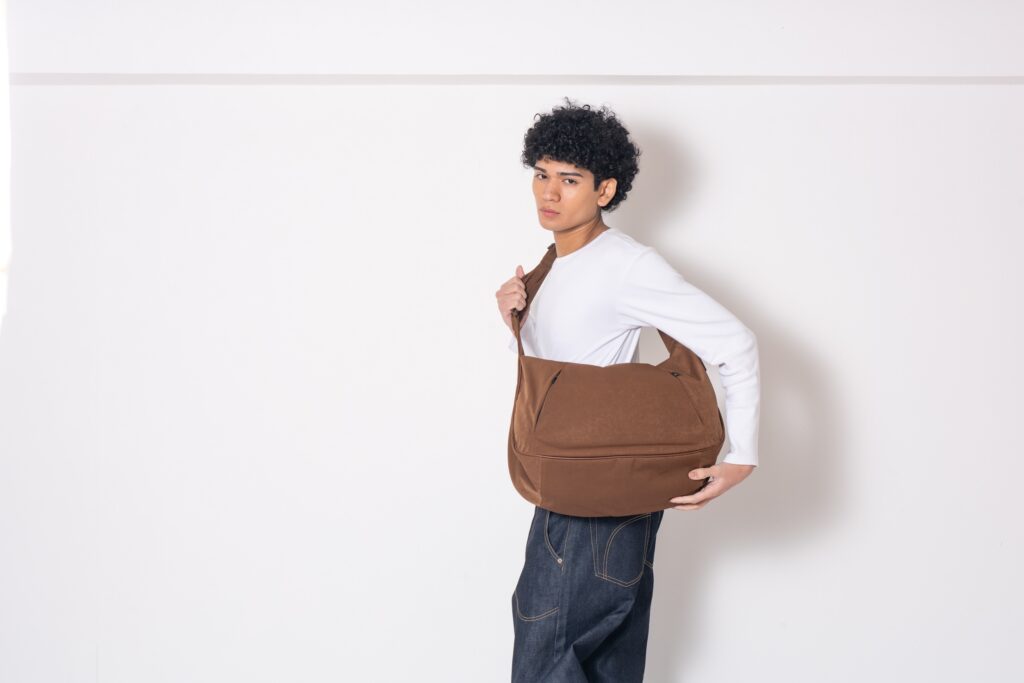 「モーフィングさせる」をテーマに完成させた「MORPH」シリーズ。 使い方でバッグのシルエットを変化させます。FRONT FACEとBACK FACEのどちら側でも表側として使用できるデザインにしました。片面はファスナー付きポケットデザイン、片面はプレーンでシンプルなデザインにしております。スタイリングによって使い方を変えて使用できます。 本体生地は特殊な糸使いと加工の組み合わせで極限まで密度を上げて仕上げをしており、撥水性を高めたスエードのような風合いとタッチが魅力の超高密度Mil Clothです。イタリア陸軍で正式装備に採用されたこともあるタフな素材を使用。肉厚でしなやかな生地にフルベジタブルレザーをコンビネーションして完成させた高級感漂うショルダーバッグとなっています。また、ショルダーから1枚パーツで流れるマチを大きく設計することで、収納力に加えて、荷物の入り方次第でさらにシルエットも変えられる楽しさもあります。 こちらのサイズはLサイズになります。