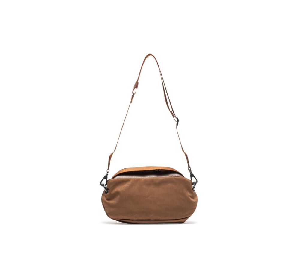 「モーフィングさせる」をテーマに完成させた「MORPH」シリーズ。 使い方でバッグのシルエットを変化させます。両サイドのリングカラビナをハトメ1つ取り外して使用することでマチを解放させ、小さな見た目以上の収納力を発揮させます。 また、ショルダーを取り外して、本体に付いた持ち手を持って持ち運ぶ事ができる構造にしています。 本体生地は特殊な糸使いと加工の組み合わせで極限まで密度を上げて仕上げをしており、撥水性を高めたスエードのような風合いとタッチが魅力の超高密度Mil Clothです。イタリア陸軍で正式装備に採用されたこともあるタフな素材を使用。肉厚でしなやかな生地にフルベジタブルレザーをコンビネーションして完成させた高級感漂うボディバッグとなっています。 メインバッグ、サブバッグとしても毎日使っていただけるとても機能的なボディバッグとなっております。