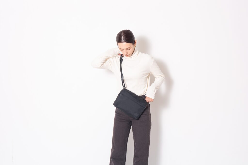P.S(POCKET SHOLDER)シリーズ。BACK PACKなどのPOCKETをトレースしたSHOLDER BAG。POCKETをより機能的にデザインし直し、1つのバッグとして改良しました。ショルダーパーツのアタッチメントは、ドイツ企業である FIDLOCK社のマグネット式アタッチメントを搭載しており、簡単に着脱することです。STAFFBAGとしての役割も担えます。本体生地のCORDURA BALLISTIC® Hollofil AIR™ Fabricは強度と耐久性 に優れ、また、軽量化を図る上でトップクラスの弱撥水国産ナイロン生地になります。ショルダー紐は 8mm芯入りナイロンハードロープを仕様し、肩への負担が軽減される太さのショルダー紐を採用しました。長さ調整も両サイドで可能となっております。