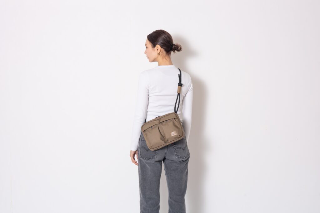 P.S(POCKET SHOULDER)シリーズ。BACK PACKなどのPOCKETをトレースし、より機能的にデザインした、REPRODUCTION SHOLDER BAG。ショルダーパーツのアタッチメントは、ドイツ企業であるFIDLOCK社のマグネット式アタッチメントを搭載しており、簡単に着脱することが可能です。STAFFBAGとしての役割も担えます。 本体生地のCORDURA BALLISTIC® Hollofil AIR™ Fabricは強度と耐久性に優れ、また、軽量化を図る上でトップクラスの弱撥水国産ナイロン生地になります。 ショルダー紐は8mm芯入りナイロンハードロープを仕様し、肩への負担が軽減される太さのショルダー紐を採用しました。長さ調整も両サイドで可能となっております。