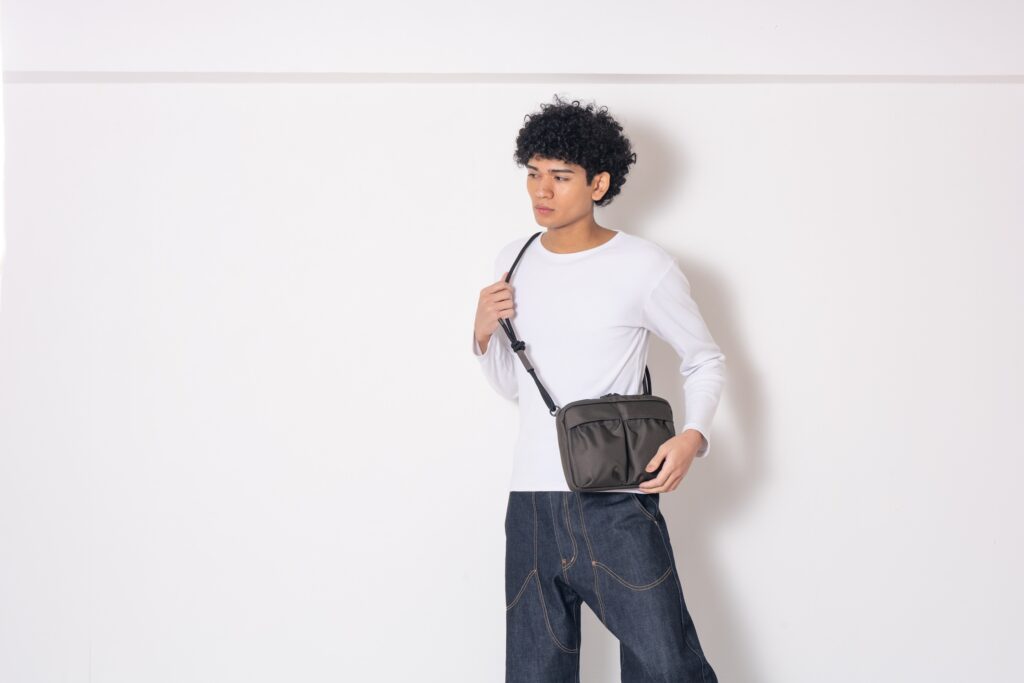 P.S(POCKET SHOULDER)シリーズ。BACK PACKなどのPOCKETをトレースし、より機能的にデザインした、REPRODUCTION SHOLDER BAG。ショルダーパーツのアタッチメントは、ドイツ企業であるFIDLOCK社のマグネット式アタッチメントを搭載しており、簡単に着脱することが可能です。STAFFBAGとしての役割も担えます。 本体生地のCORDURA BALLISTIC® Hollofil AIR™ Fabricは強度と耐久性に優れ、また、軽量化を図る上でトップクラスの弱撥水国産ナイロン生地になります。 ショルダー紐は8mm芯入りナイロンハードロープを仕様し、肩への負担が軽減される太さのショルダー紐を採用しました。長さ調整も両サイドで可能となっております。
