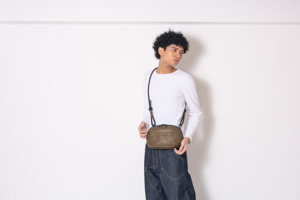 P.S(POCKET SHOULDER)シリーズ。BACK PACKなどのPOCKETをトレースし、より機能的にデザインした、REPRODUCTION SHOLDER BAG。ショルダーパーツのアタッチメントは、ドイツ企業であるFIDLOCK社のマグネット式アタッチメントを搭載しており、簡単に着脱することが可能です。STAFFBAGとしての役割も担えます。本体のレザーはゆっくりと時間かけられて鞣されたオリジナルベジタブルタンニンレザーを使用。天然素材ならではの自然な表情と、使い込むことによって生まれる美しい経年変化と味わえます。また、タンナー独自の染色加脂加工技術により、肌に吸い付くようなソフトでハリののあるタッチ感を実現しています。 ショルダー紐は8mm芯入りナイロンハードロープを仕様し、肩への負担が軽減される太さのショルダー紐を採用しました。長さ調整も両サイドで可能となっております。